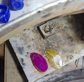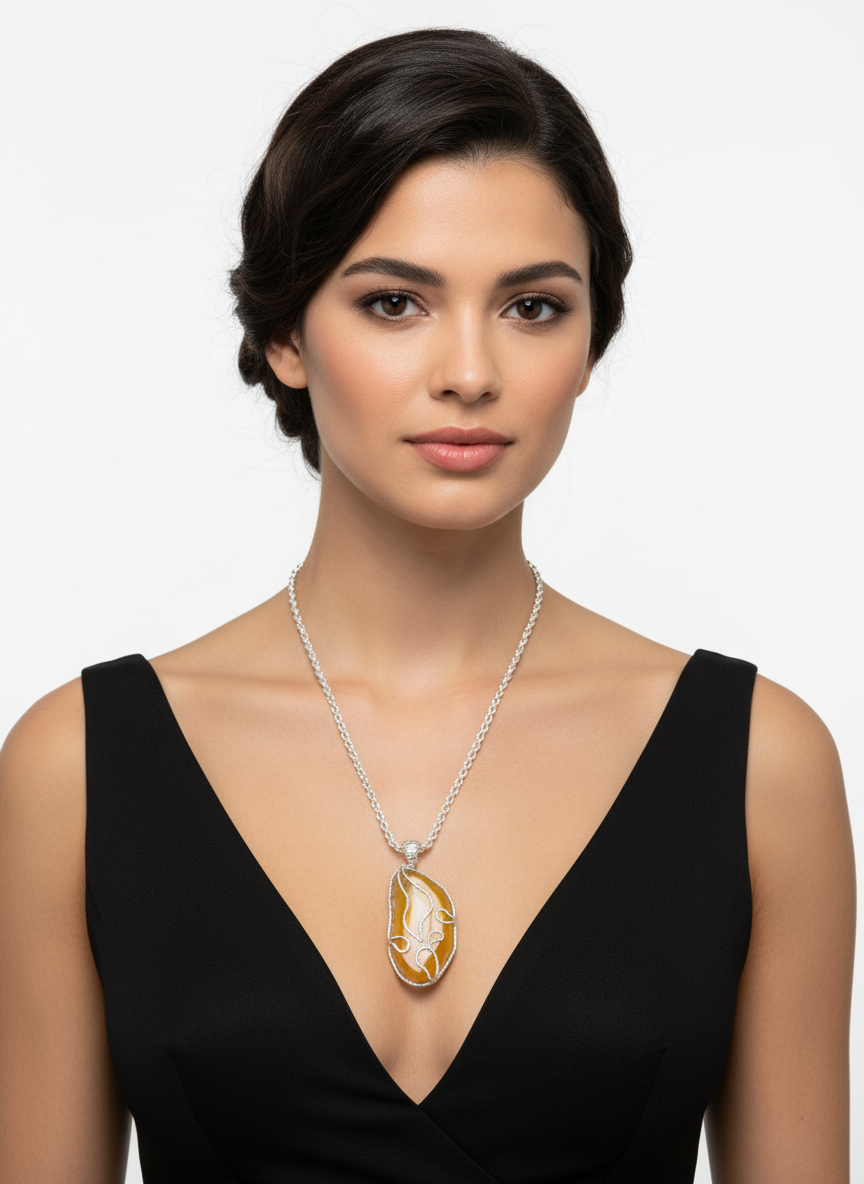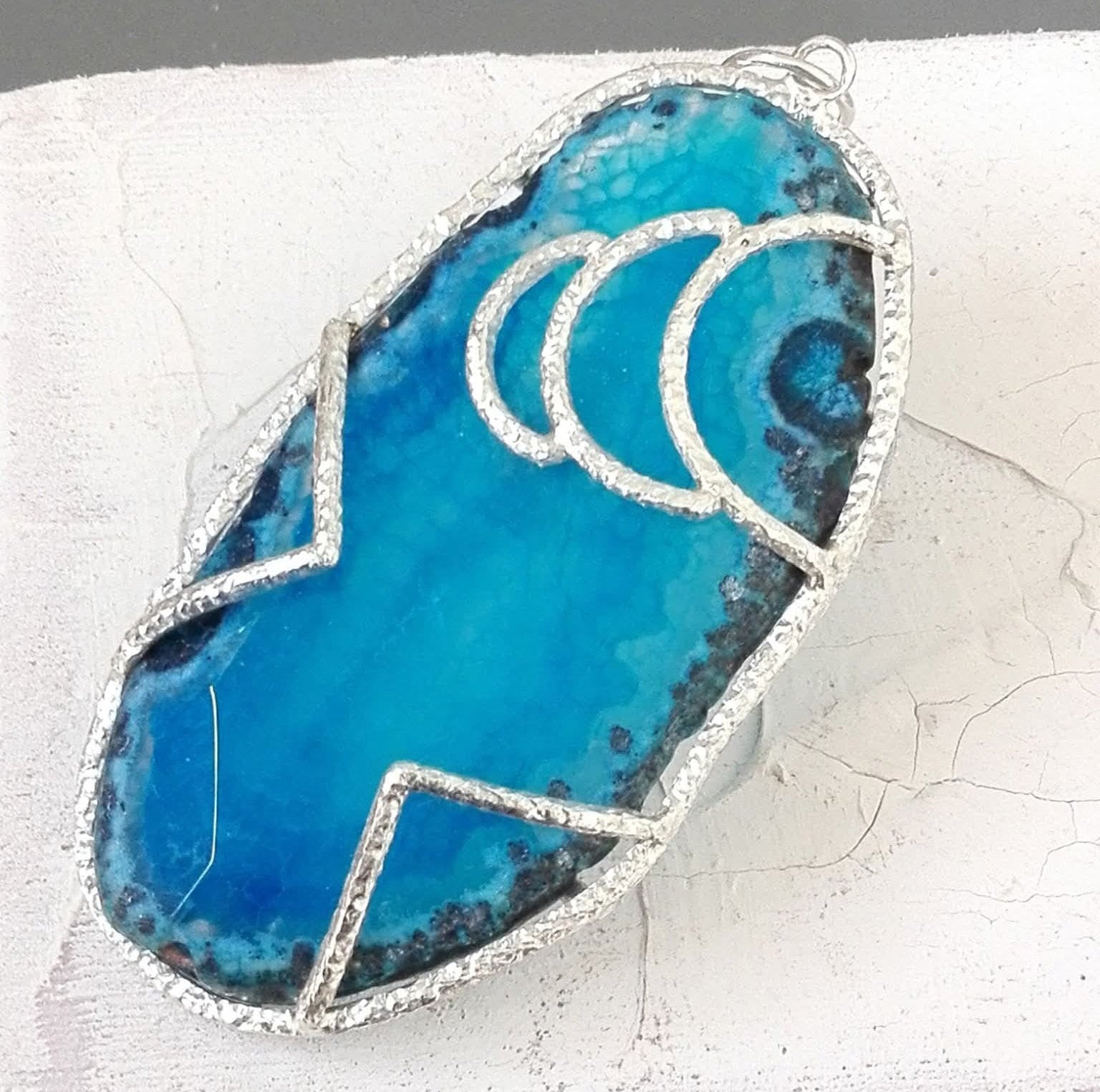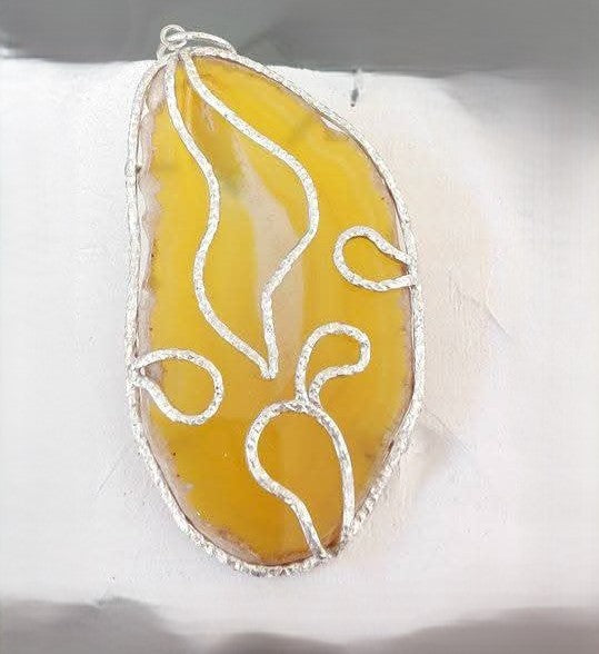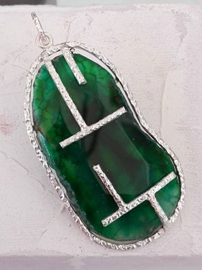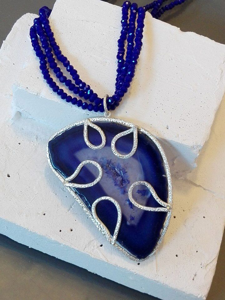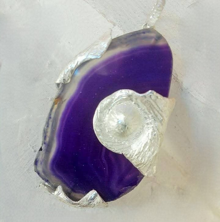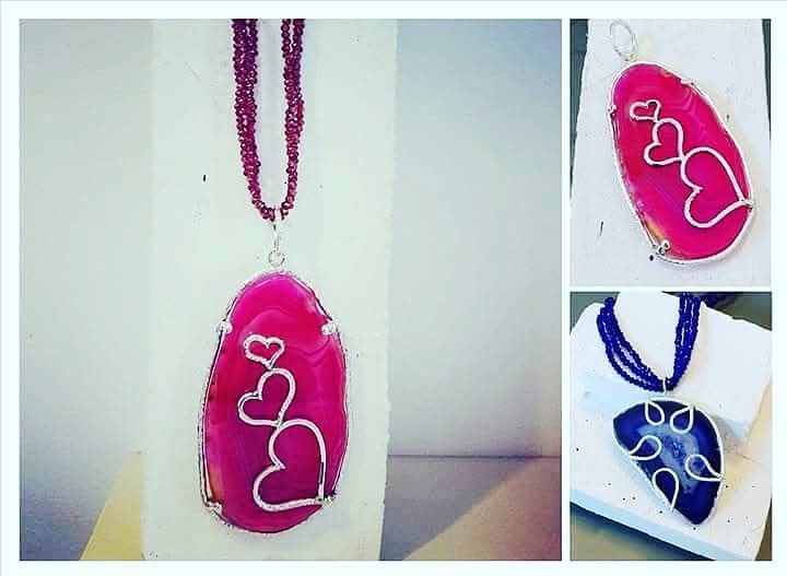 collana in argento  925%°  e fetta di Agata naturale dalle sfumature uniche, trasformata a mano in un gioiello irripetibile. Cuori, geometrie e dettagli esclusivi rendono ogni collana un piccolo capolavoro